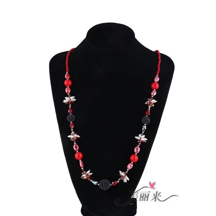 Totem Jewelry Crystal Pearl Agate Beaded Long Necklace Sweater Chain 092